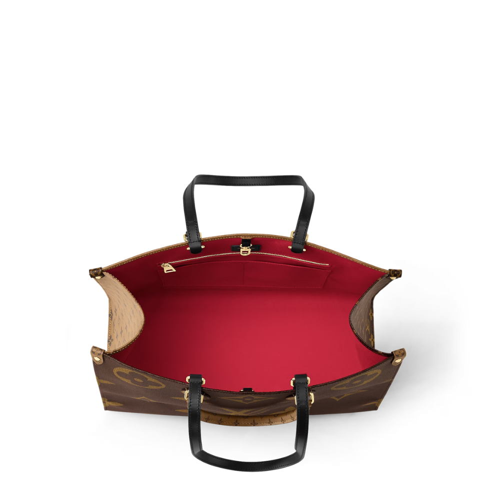 Fashioned from Monogram Giant canvas, the OnTheGo GM tote bag is as striking as it is practical. A Monogram Reverse pattern on the sides and handles creates a stylish contrast in color and scale. With its generous capacity, shoulder straps and iconic Toron top handles, this versatile GM model is an ideal bag for everyday wear.